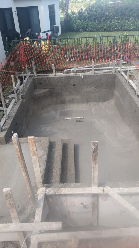 - A professional excavator carefully dug the pool’s shape, ensuring precise depth and dimensions.